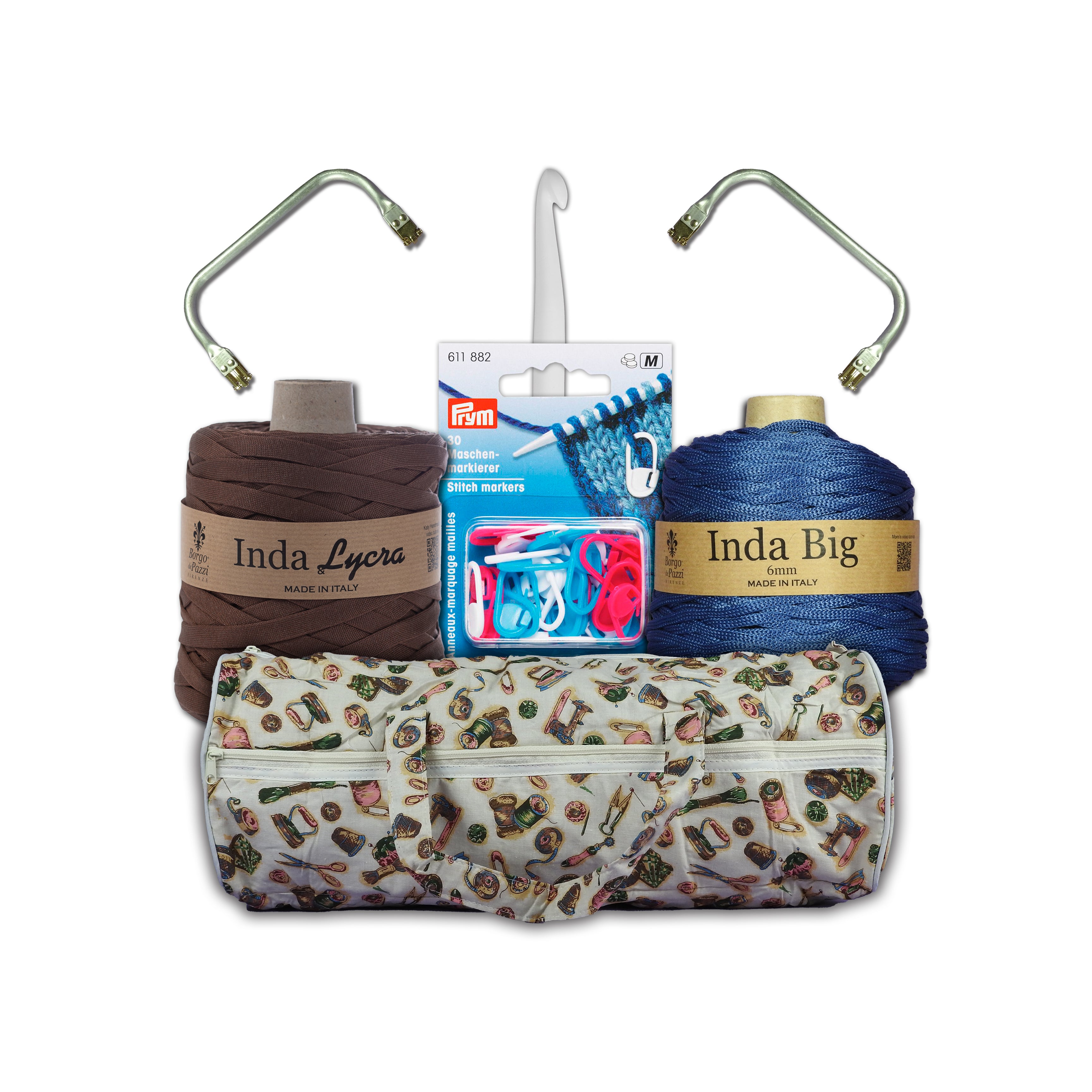 Prova i nostri due nuovi filati Inda Lycra ed Inda Big, perfetti per realizzare fantastiche Borse all'Uncinetto! Nel Kit sono inclusi anche una scatola di Fermapunti, Due chiusure, Un uncinetto ed una pratica Borsa porta lavoro ad un Prezzo-Super!